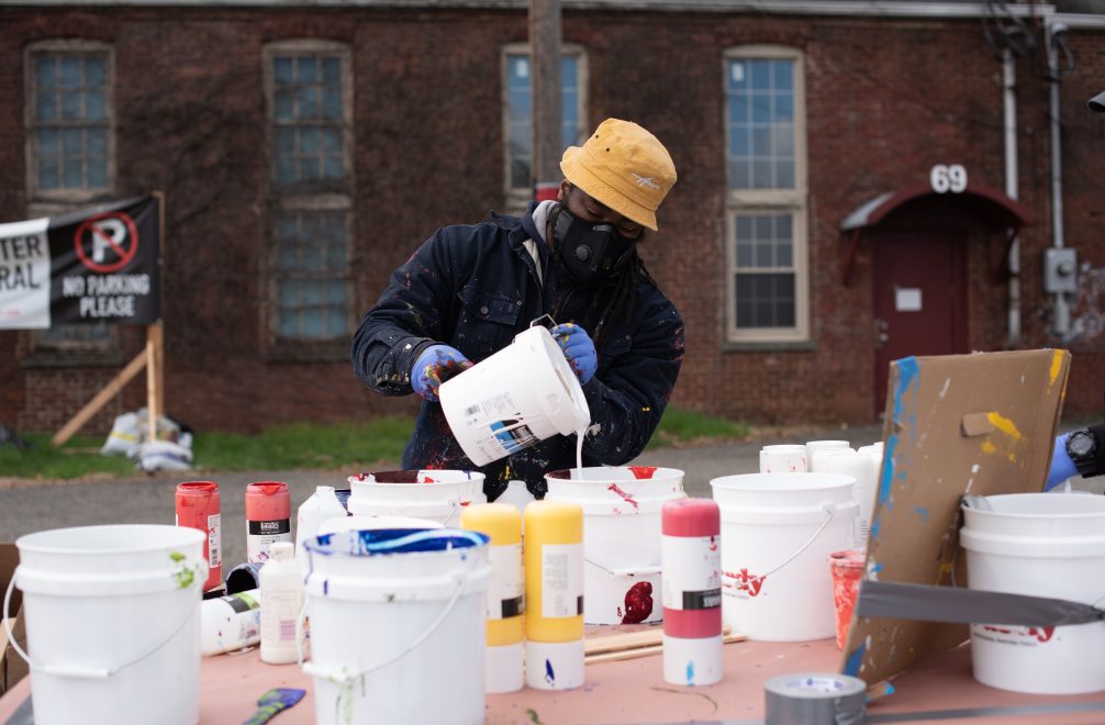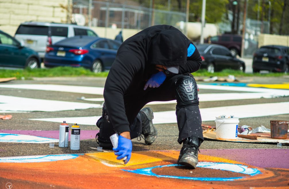 The Black Lives Matter mural was initiated as a bold supportive statement to spread a positive message of creativity, community and social awareness within the area. The 9,000 sqft mural was painted onto the floor in the parking lot in East Orange’s Manufacturers Village studios. Built in the 1880s, this is a repurposed Victorian industrial complex, now home to a community of artists and creatives. Project management and guidance came from the artists at Manufacturer’s Village, the Arts Council of East Orange, Pink Dragon Artist Syndicate and Liquitex, with additional support from community fundraising.