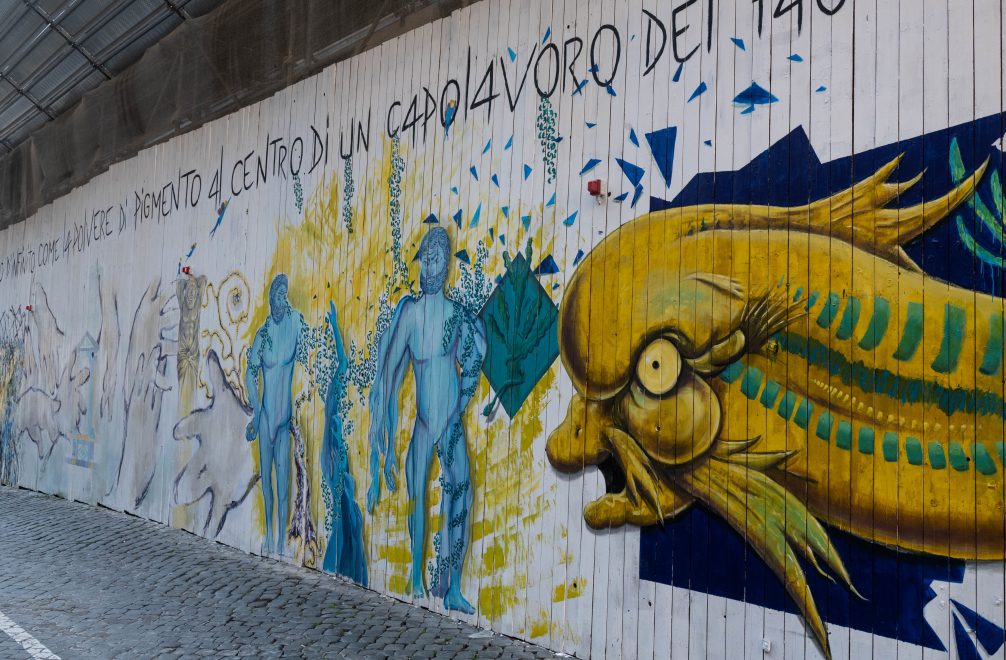 Artists were guided by Aristide Barraud, who transformed the walls into a space for creation and poetry through his collages of texts and photographs, and Guido d'Angelo, a painter and lecturer at the Rome University of Fine Arts and technical coordinator of the project.