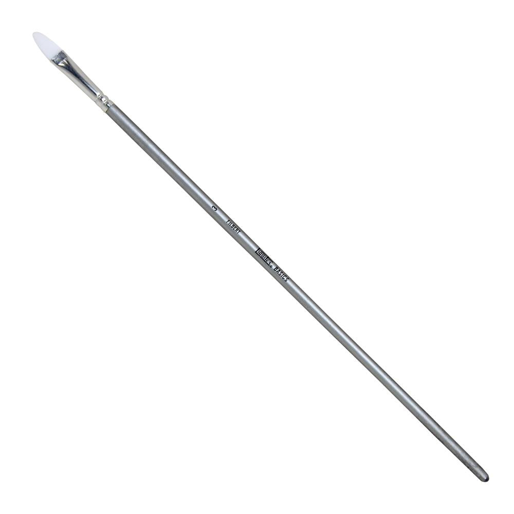 Designed for use with acrylic colors and mediums, these five shapes will take you from drafting to final details, and every stage in between. With medium-soft synthetic bristles and long, smooth handles, Basics brushes are easy to clean, super durable and carry a good color load. With a flat, oval-shaped bristle head, the curved Filbert brush is great when you want a broad stroke with a soft edge, blending and colorwashing.