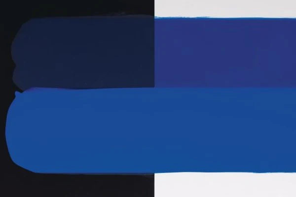 See the difference in opacity when comparing naturally transparent Ultramarine Blue (red shade) in Soft Body (top) and Acrylic Gouache (bottom).