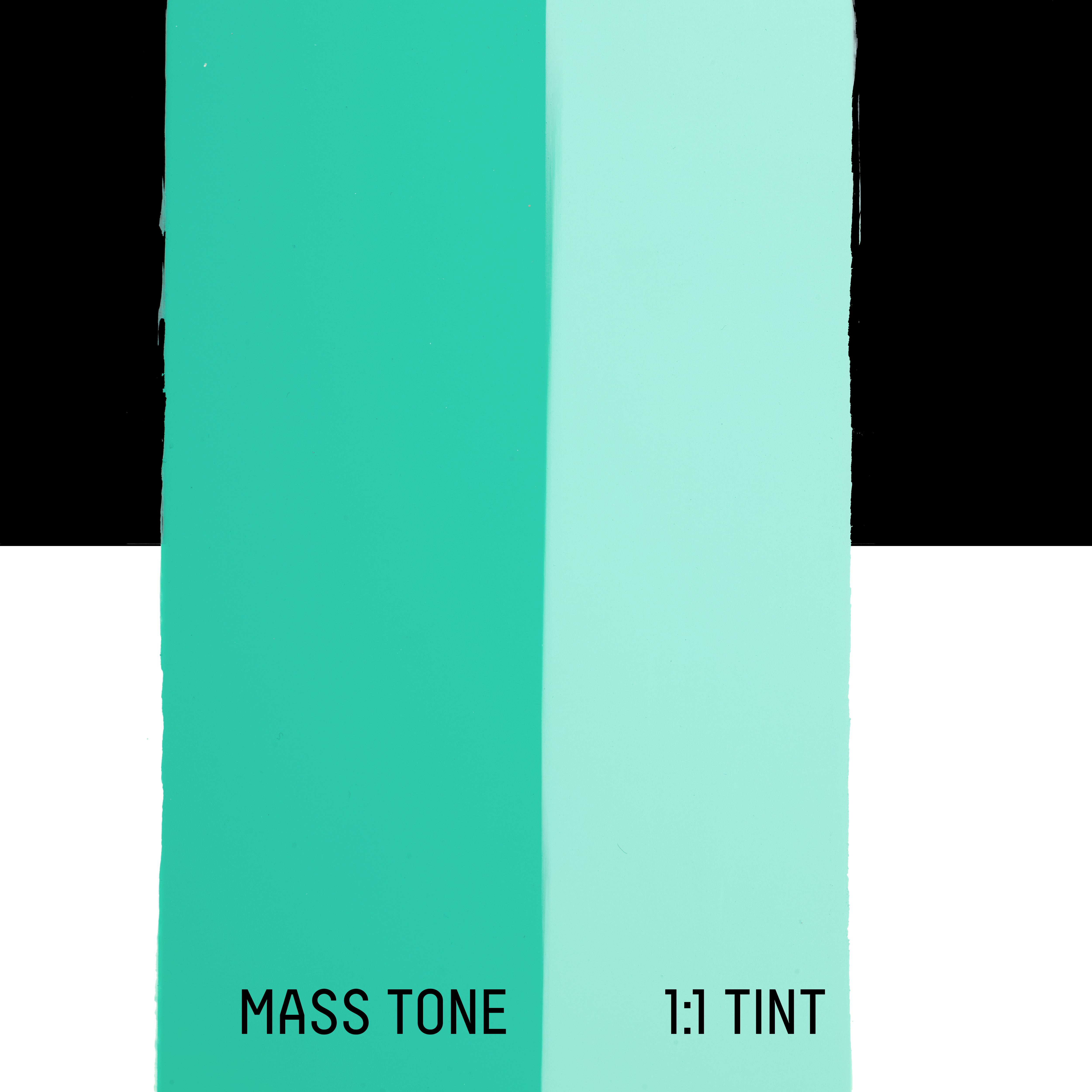 An opaque vivid green-blue color made with a mix of phthalocyanine blue, titanium white and phthalocyanine green (blue shade)