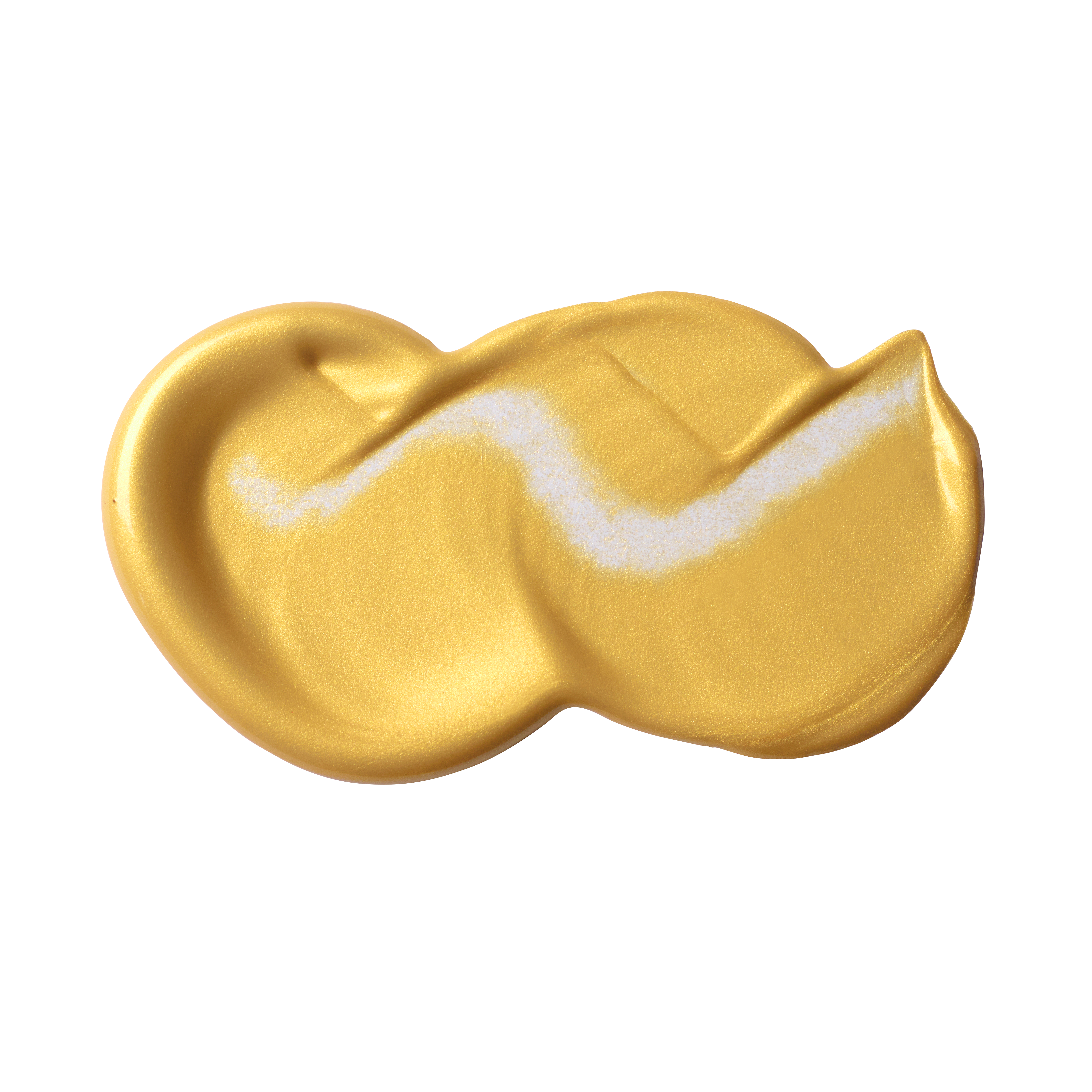 A metallic brilliant gold. Semi-opaque, the color gives a bright iridescent lustre resembling that of polished gold metal
