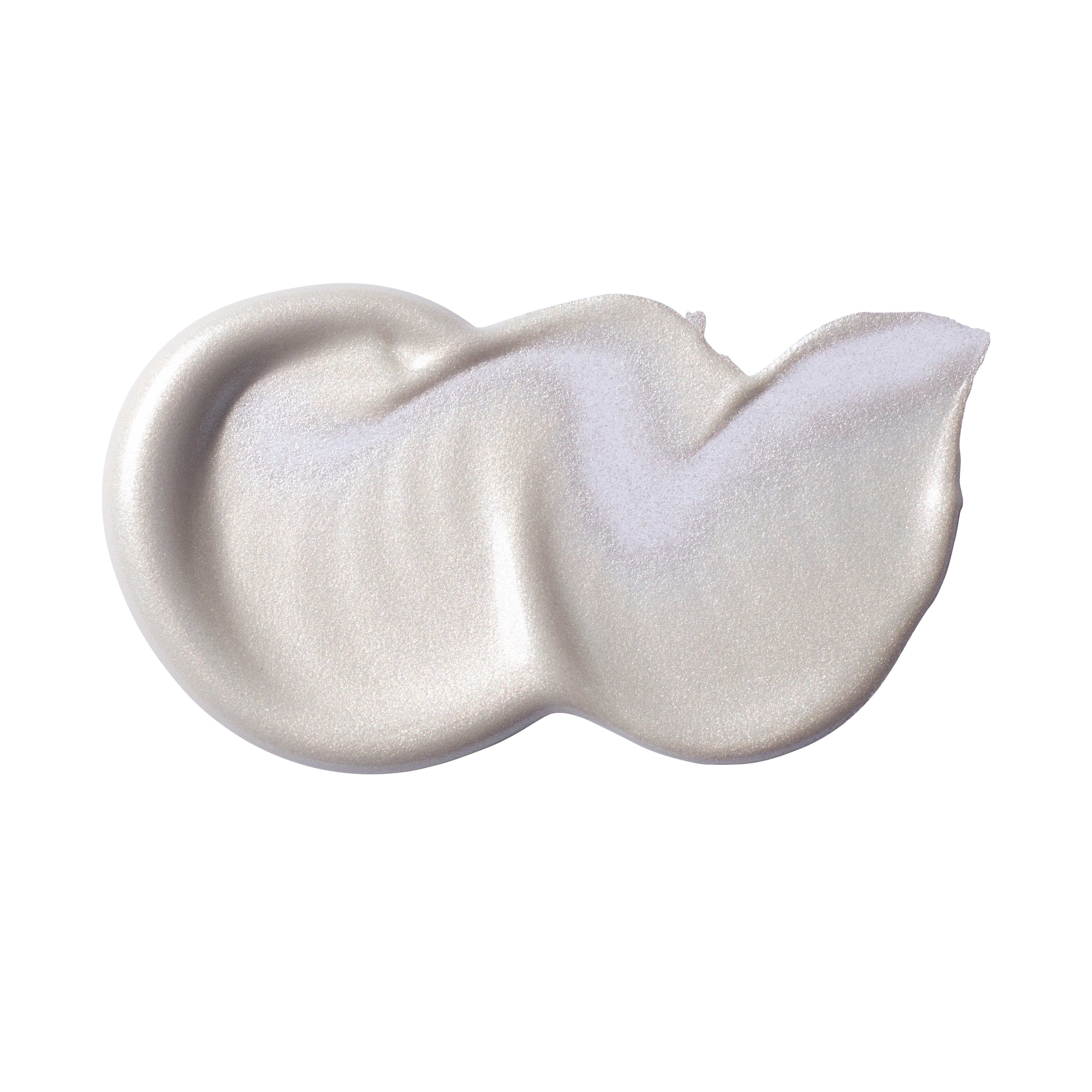 A cool pearlescent white. Semi-opaque, the color has a reflective lustre with silver facets. The pearlescent effect is most effective when mixed with transparent colors and even more effective laid over a dark background